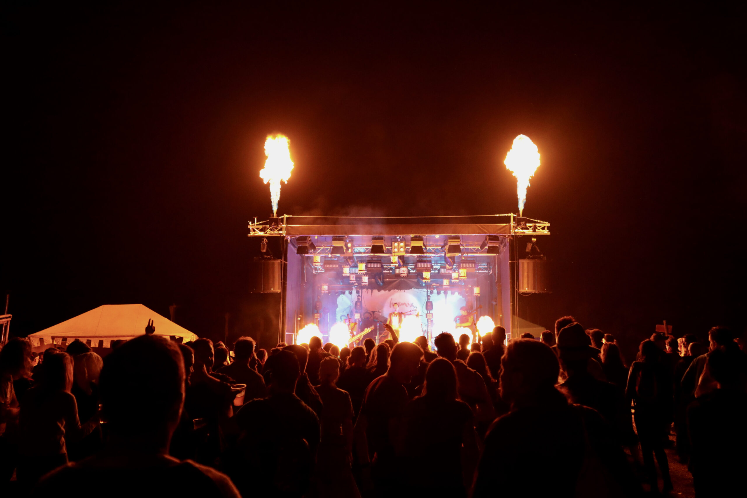 Semiprofessionelle Bühne mit 45m² Bühnenfläche und einem Satteldach.